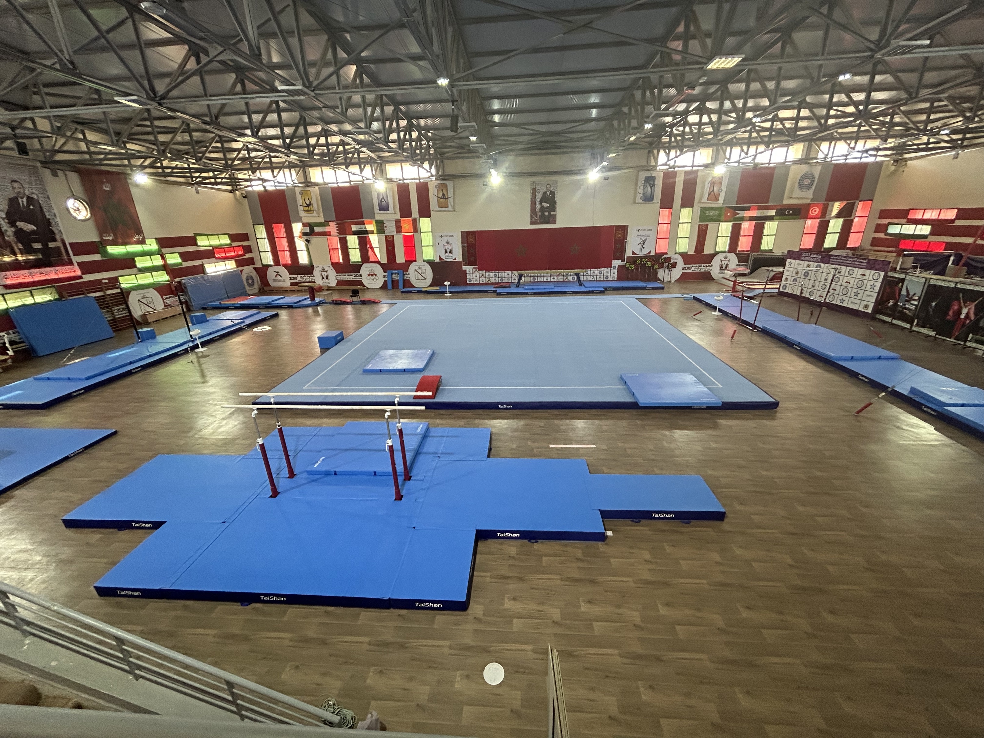Taishan Sports will provide equipment including the B-type floor, rings, vault, parallel bars, uneven bars, as well as carbon fiber pommel horse, horizontal bar, and balance beam for the event. The President of the Moroccan Gymnastics Association visited the venue to inspect the equipment setup and gave positive feedback on our products and services. We are proud to support this event and receive recognition for our contributions.