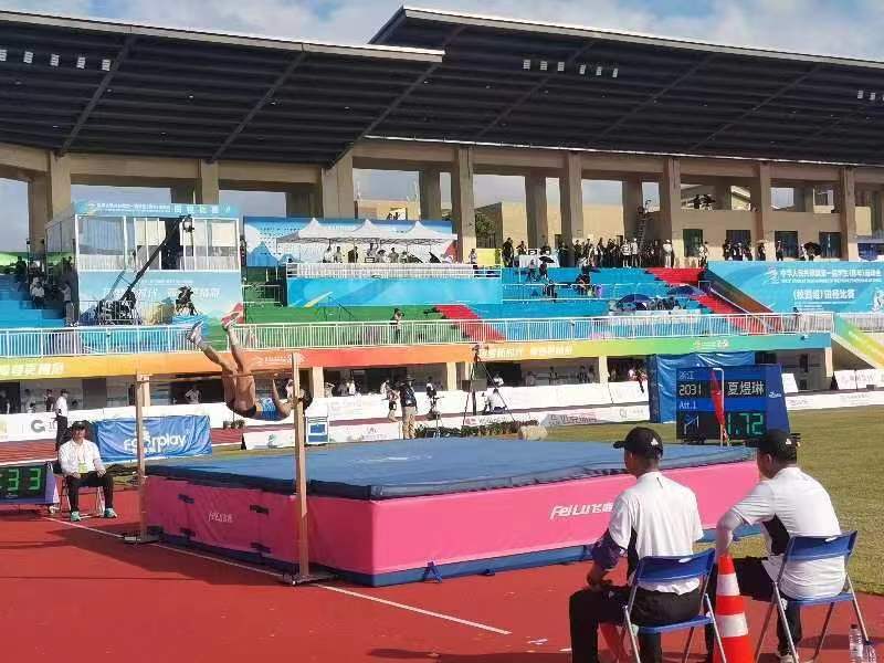 △ 中国·3003体育跳高赛事器材上的比赛照片