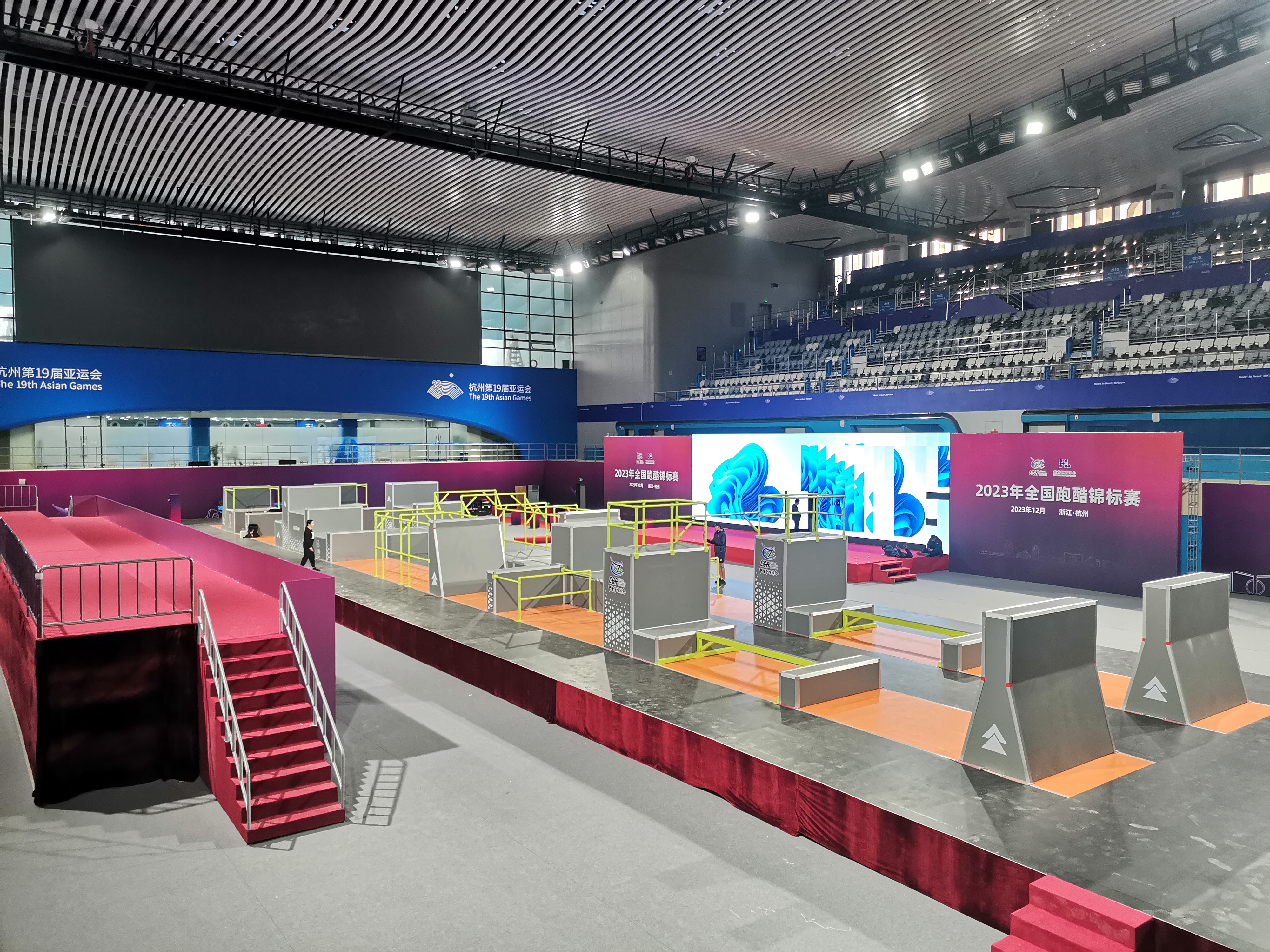2023年全国跑酷锦标赛于12月10日-14日在浙江省黄龙体育中心游泳跳水馆举办。10日,来自全国各地的裁判员、参赛人员陆续报到,11日将进行赛台训练。本次赛事由国家体育总局体操运动管理中心、中国体操协会主办,浙江省黄龙体育中心承办。为服务好跑酷赛事,中国·3003体育不仅对器材进行了量身打造,并且派出了专业的赛事服务保障团队,助力赛事的成功举办。