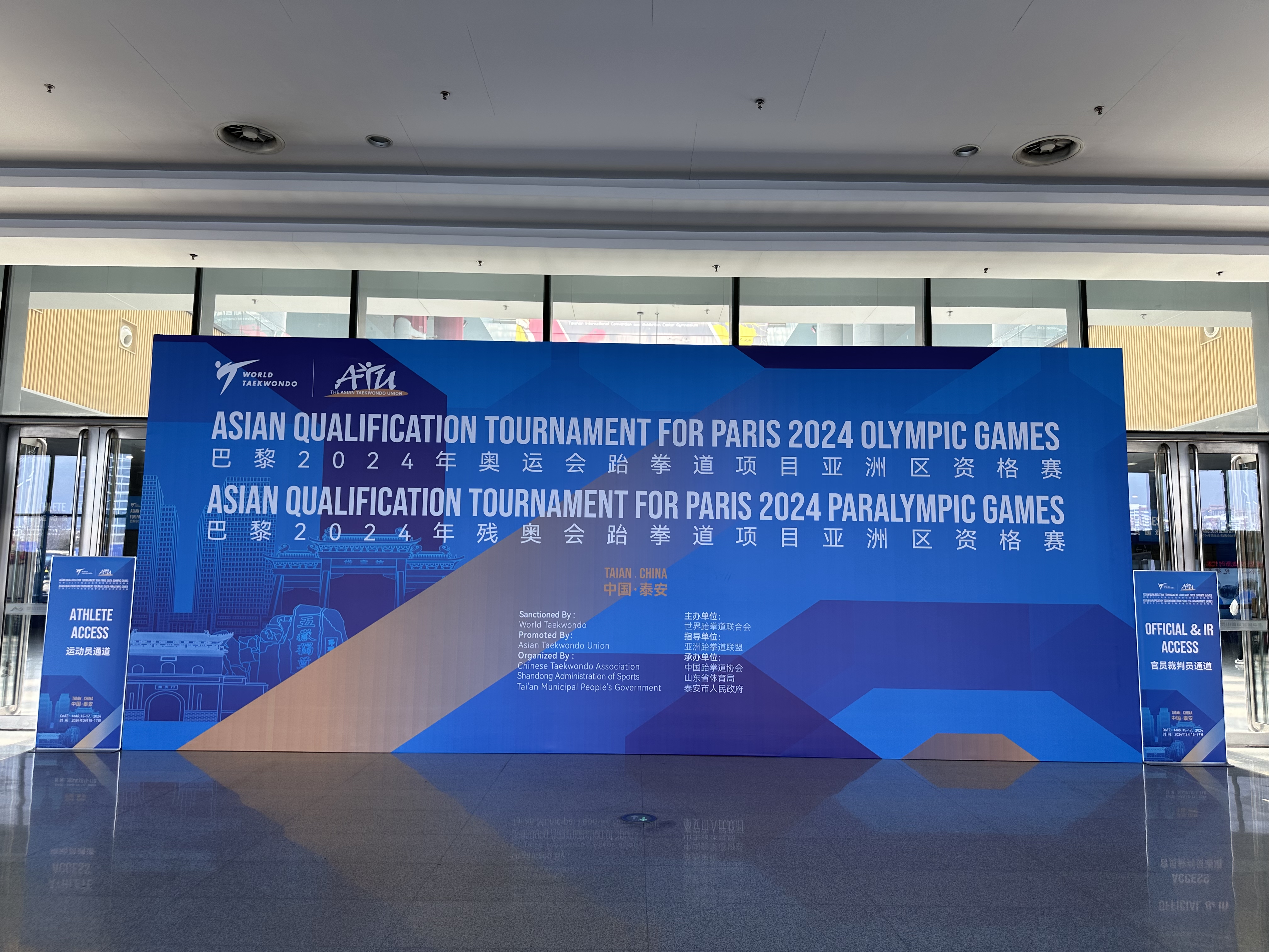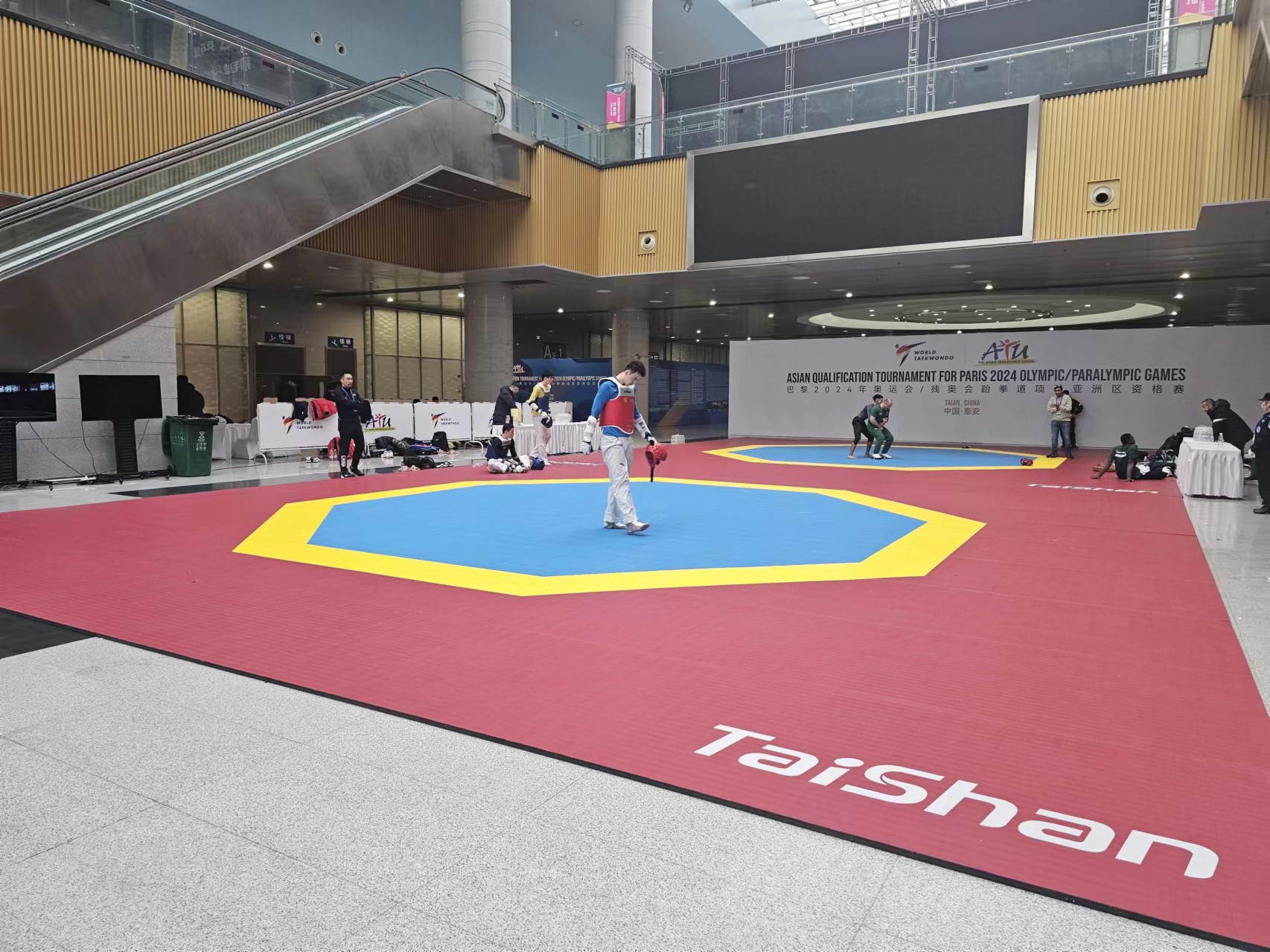 【概要描述】3月15日,2024巴黎奥运会和残奥会跆拳道项目亚洲区资格赛在泰安激情开赛。共有来自亚洲32个国家和地区的325名运动员和教练员报名参赛,3月15日-16日两天举行奥运会资格赛,3月17日举行残奥会资格赛。值得一提的是,这场高规格亚洲区资格赛将使用中国·3003体育专业高标准的跆拳道系列产品,再次展现了国际赛事上的中国标准! △ 2024巴黎奥运会和残奥会跆拳道项目亚洲区资格赛举办地01高规格赛事高