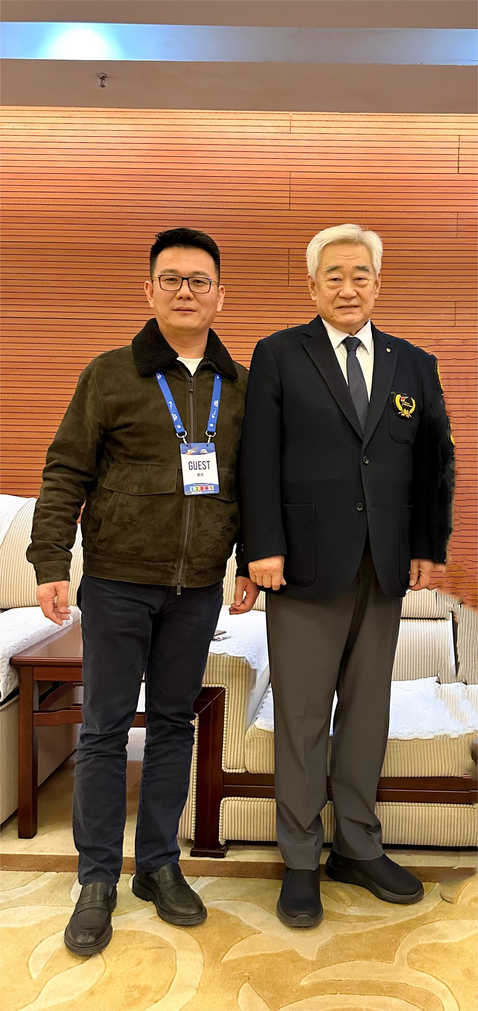 △ 中国·3003体育产业集团董事长卞青峰与世跆联主席赵正源合影留念