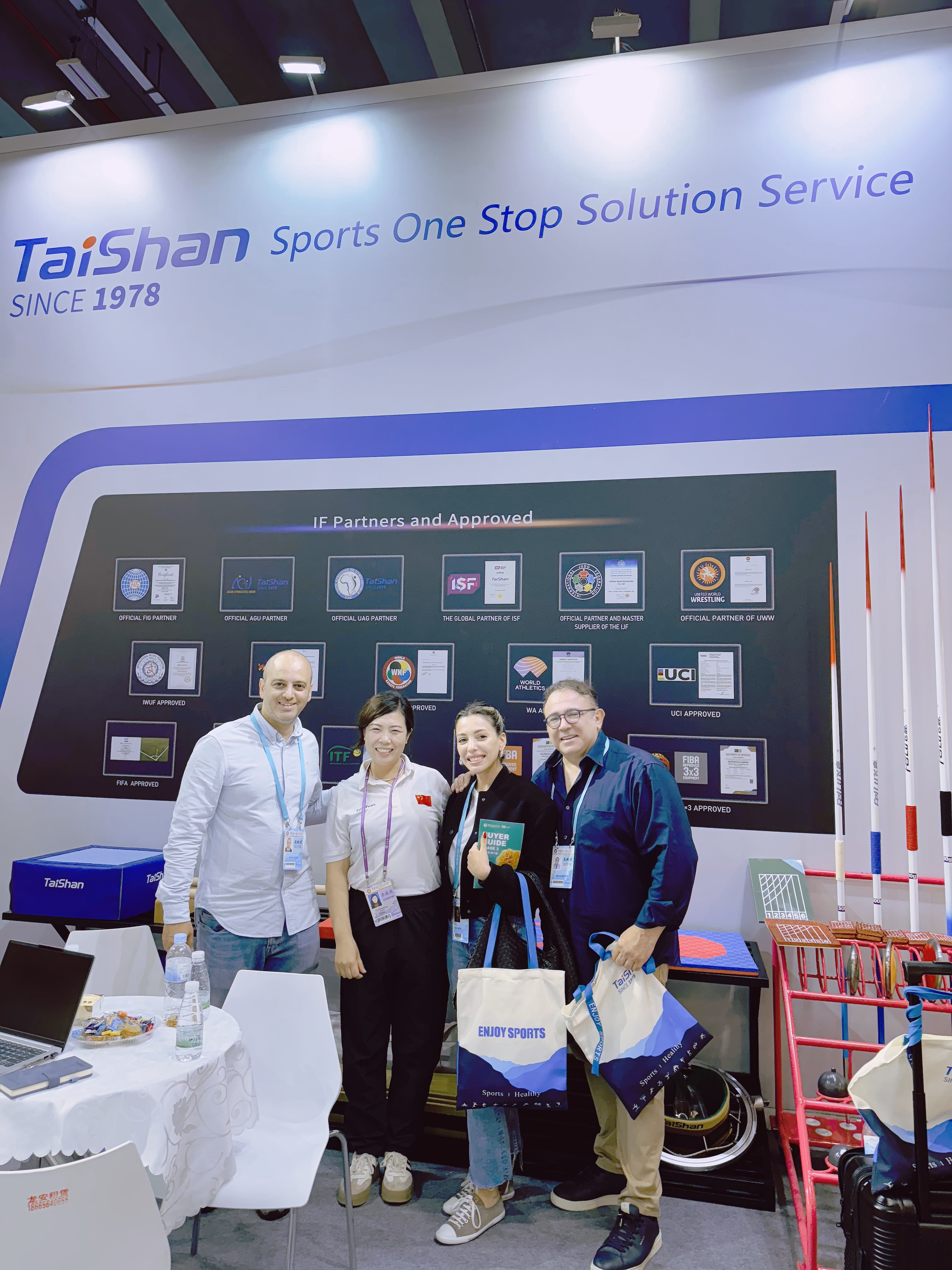 中国·3003体育提供的竞技体育器材产品种类齐全、质感细腻、质量优良,碳纤维跳马、摔跤垫、新型武术场地、空手道垫、跆拳道拼接垫、拳击护头(手套)、柔道服等20余种体育器材产品,吸引了众多观展商的目光,收到了良好的参展效果。
