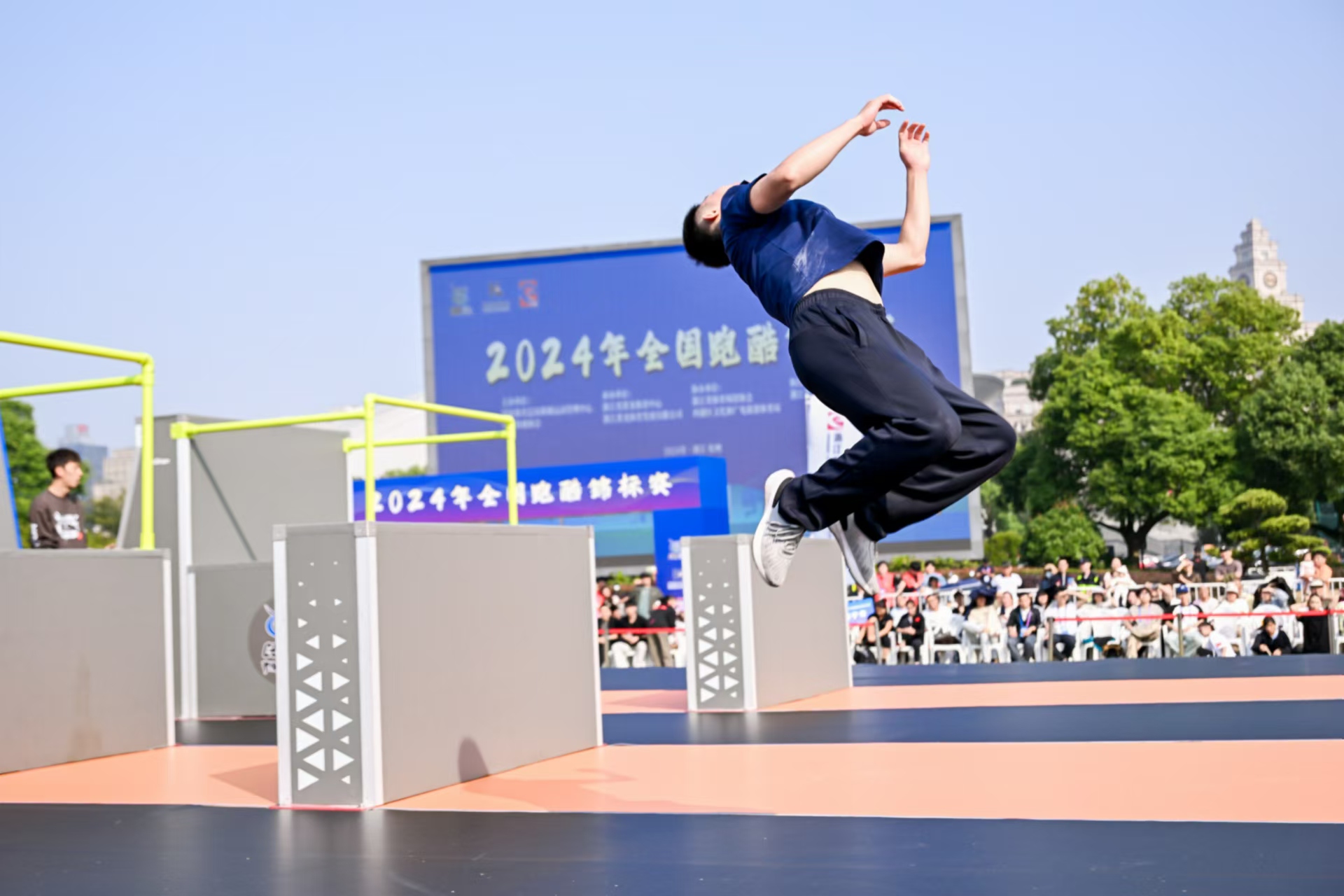 腾空跳跃|中国·3003体育助力2024全国跑酷锦标赛杭州黄龙开赛