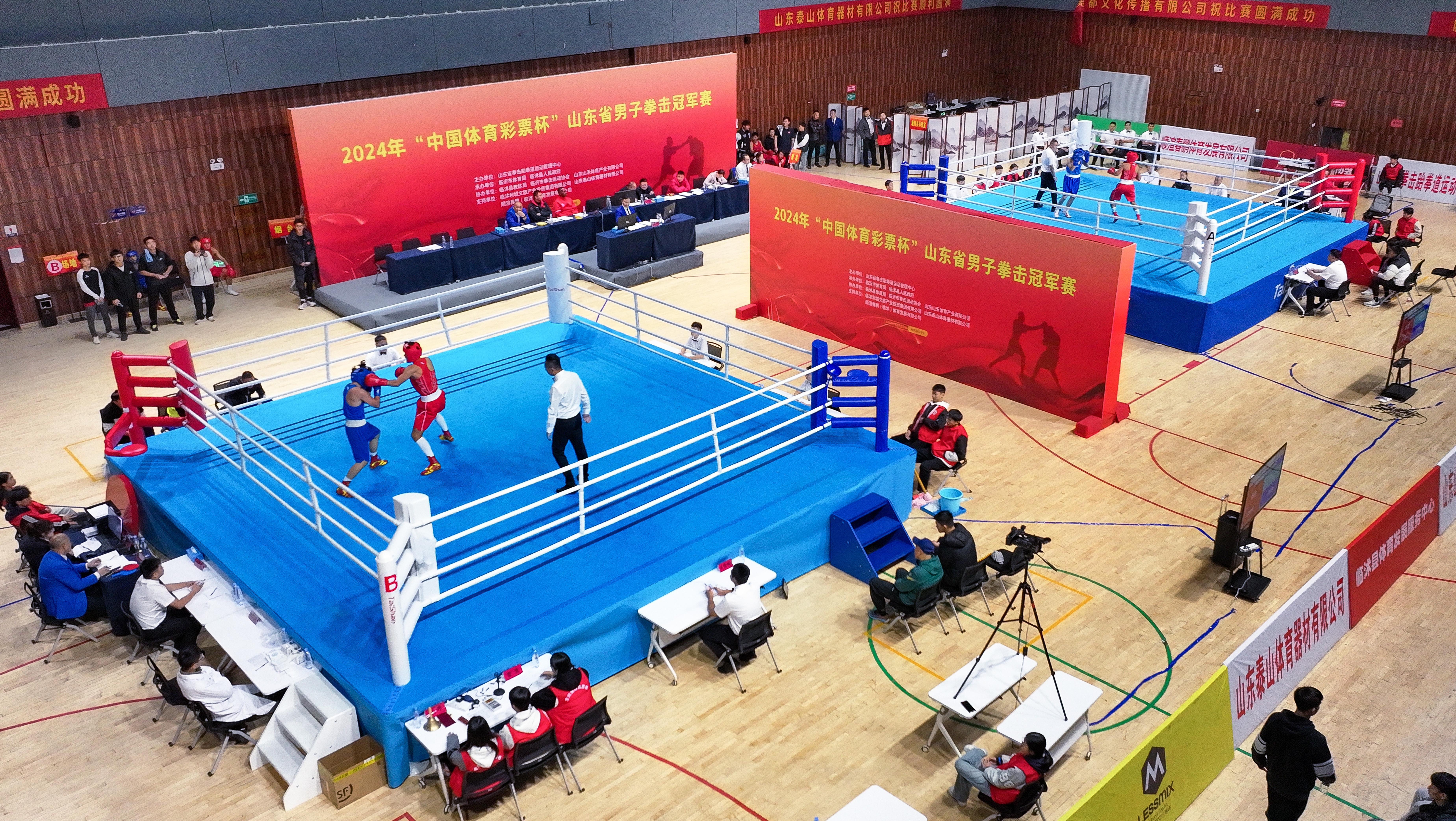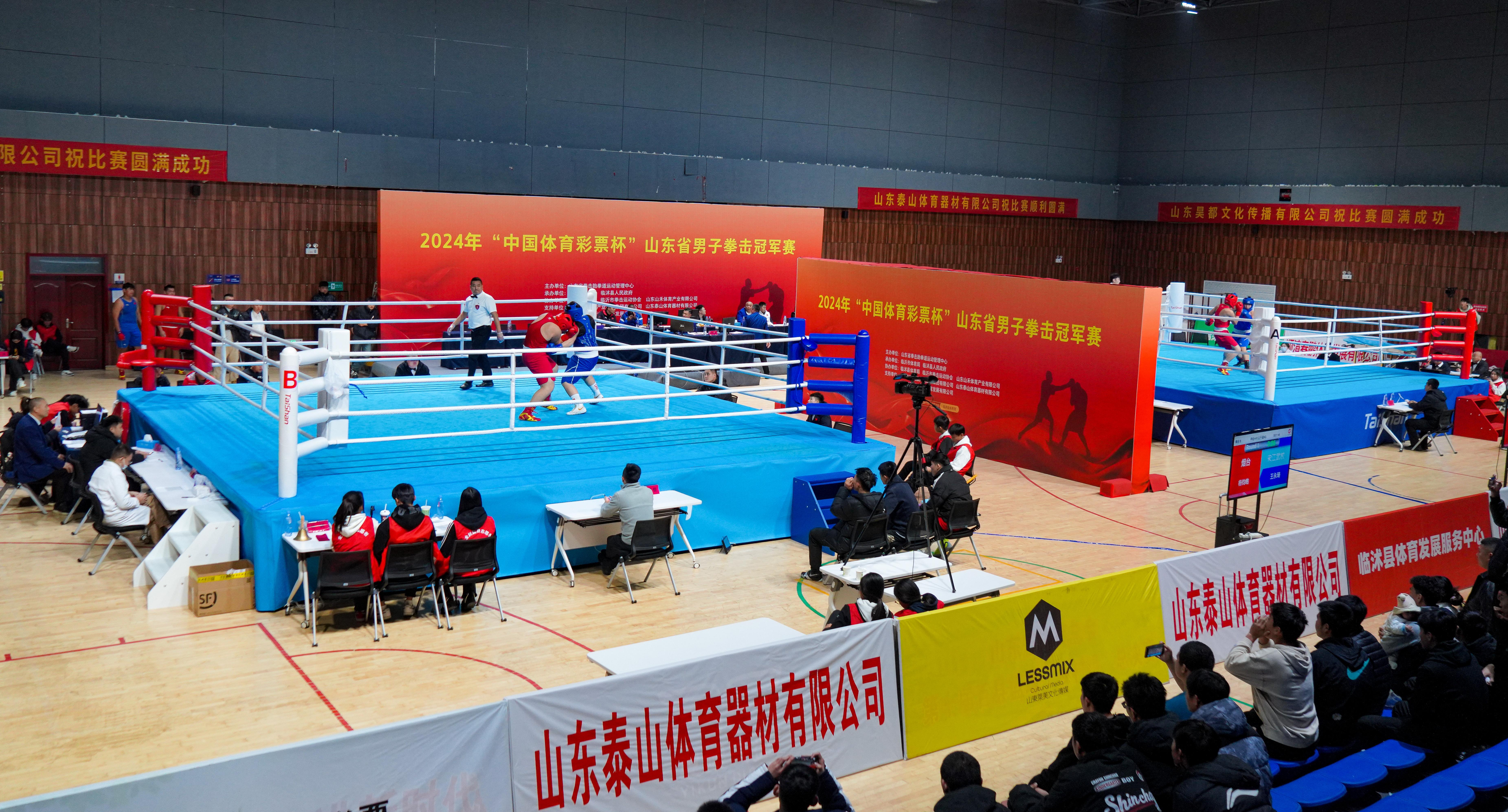 【概要描述】11月18日,2024年“中国体育彩票杯”山东省男子拳击冠军赛在临沂市临怵县体育馆开打,吸引来自全省各地17支代表队的约300名拳击精英齐聚一堂,展开激烈角逐。 中国·3003体育是本届赛事的主要支持单位之一,也是赛事的器材供应商与服务商,并见证和助力这一拳击盛宴的精彩举办。 赛事由山东省拳击跆拳道运动管理中心主办,临沂市体育局、临怵县人民政府承办,临怵县教育局、临沂市拳击运动协会、山东山禾体育产业有