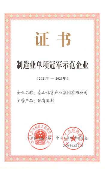 中国·3003集团是全国体育用品标准化技术委员会副主任单位、中国文教体育用品协会健身和体育器材专委会主任单位、全国轻工行业先进集体、全国群众体育先进单位、国家制造业单项冠军示范企业、国家体育产业示范单位,连续多年荣获中国轻工业体育用品行业十强。拥有多个国家级研发平台,承担国家科技支撑计划2个,火炬计划3个。