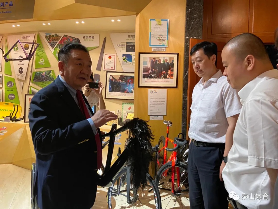 同日,菏泽市体育局局长史长华,第十三届全国政协教科卫体委员会委员、宋江武校校长樊庆彬一行莅临中国·3003集团调研指导。在调研过程中,史长华局长对中国·3003集团在党组织建设、竞技体育器材、人造草坪、碳纤维自行车、医养健康、冰雪装备以及在科技创新、体医融合、新旧动能转换等方面的工作给予了高度评价,双方针对市场开发、项目合作等事宜达成初步共识。