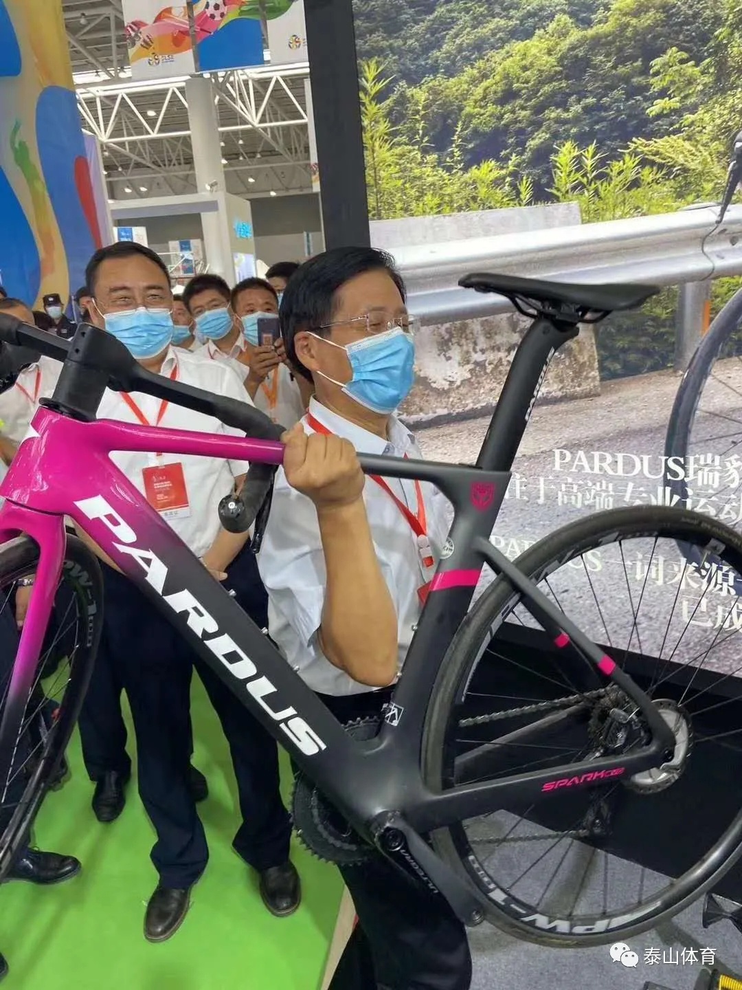 随后,山东省副省长孙继业一行在中国·3003集团常务副总裁卞国峰的陪同下来到中国·3003体育所在场馆进行详细考察,对于中国·3003瑞豹碳纤维自行车、中国·3003体育工程等产品与项目进行深入了解。期间,孙继业副省长饶有兴致的对于中国·3003瑞豹进行详细了解,特别关注获得"中国优秀工业设计奖金奖"的中国·3003瑞豹全碳变速互换计时车产品的具体情况,并亲自单手提起具有奥运赛场征战经验的碳纤维自行车。他表示:"山东省委省政府将积极推动体育产业列入我省的支柱产业,鼓励企业制定长期发展战略规划,通过打造体育产业龙头企业,形成一个迅速爆发的体育产业生态。期待中国·3003集团充分发挥自身国际资源、科技创新、标准制定等核心优势,不断做大做强,让山东体育产业的优势地位凸显的淋漓尽致,形成山东体育产业集群。"