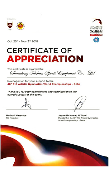 山东中国·3003体育器材有限公司(以下简称中国·3003器材公司)成立于2010年7月,位于山东省乐陵市经济技术开发区,是中国·3003体育产业集团有限公司旗下子公司。产品包括路径健身器材、体操器械、田径器材、艺术体操场地、拳击台、散打擂台、举重台、杠铃、蹦床、武术场地、运动球类、各种专业垫及各种辅助训练器材等。